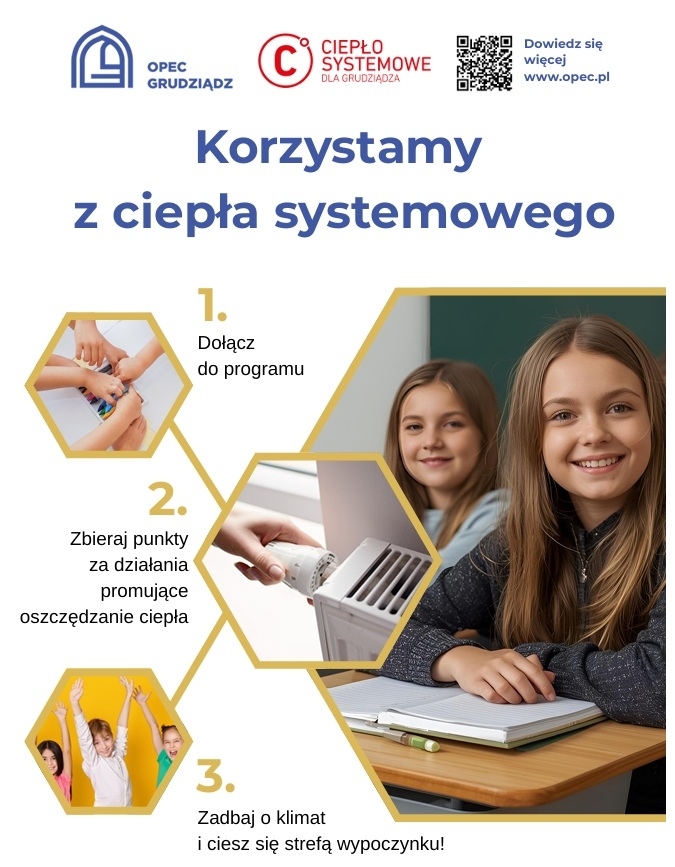 Nasza szkoła przystąpiła do programu promującego organizowanego przez OPEC GRUDZIĄDZ oszczędzanie ciepła oraz odpowiedzialne korzystanie z energii. Celem inicjatywy jest zwiększenie świadomości ekologicznej wśród uczniów oraz pokazanie, jak ważne są codzienne działania sprzyjające ochronie klimatu. W ramach programu uczniowie będą podejmować różnorodne aktywności związane z oszczędzaniem energii cieplnej oraz zdobywać punkty za działania promujące dobre nawyki.