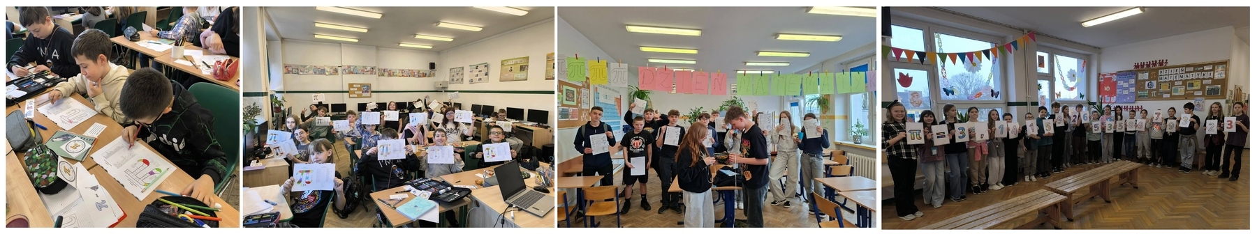Podczas obchodów Dnia Matematyki i Międzynarodowego Dnia Liczby Pi (π) uczniowie poznali fascynującą historię odkrycia liczby π przez Archimedesa oraz zmierzyli się z różnorodnymi matematycznymi układankami i łamigłowkami. Zadania nie tylko rozwijały logiczne myślenie, ale także pozwoliły połączyć matematykę z kreatywnością. Zaangażowanie było ogromne, a czas minął wyjątkowo szybko! Świętowanie miało również międzyszkolny akcent — czworo uczniów reprezentowało naszą szkołę w konkursie „Jeden z dziesięciu” dla klas czwartych w Szkole Podstawowej nr 3, wykazując się wiedzą i odwagą.